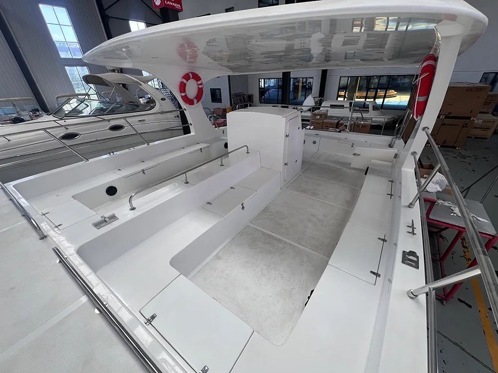 Η νομοθεσία®Το Commercial Catamaran 30ft μπορεί να είναι εξοπλισμένο με εξωλέμβιο κινητήρα, διπλό εξωλέμβιο κινητήρα ή ακόμα και εσωτερικό κινητήρα σύμφωνα με τις απαιτήσεις σας